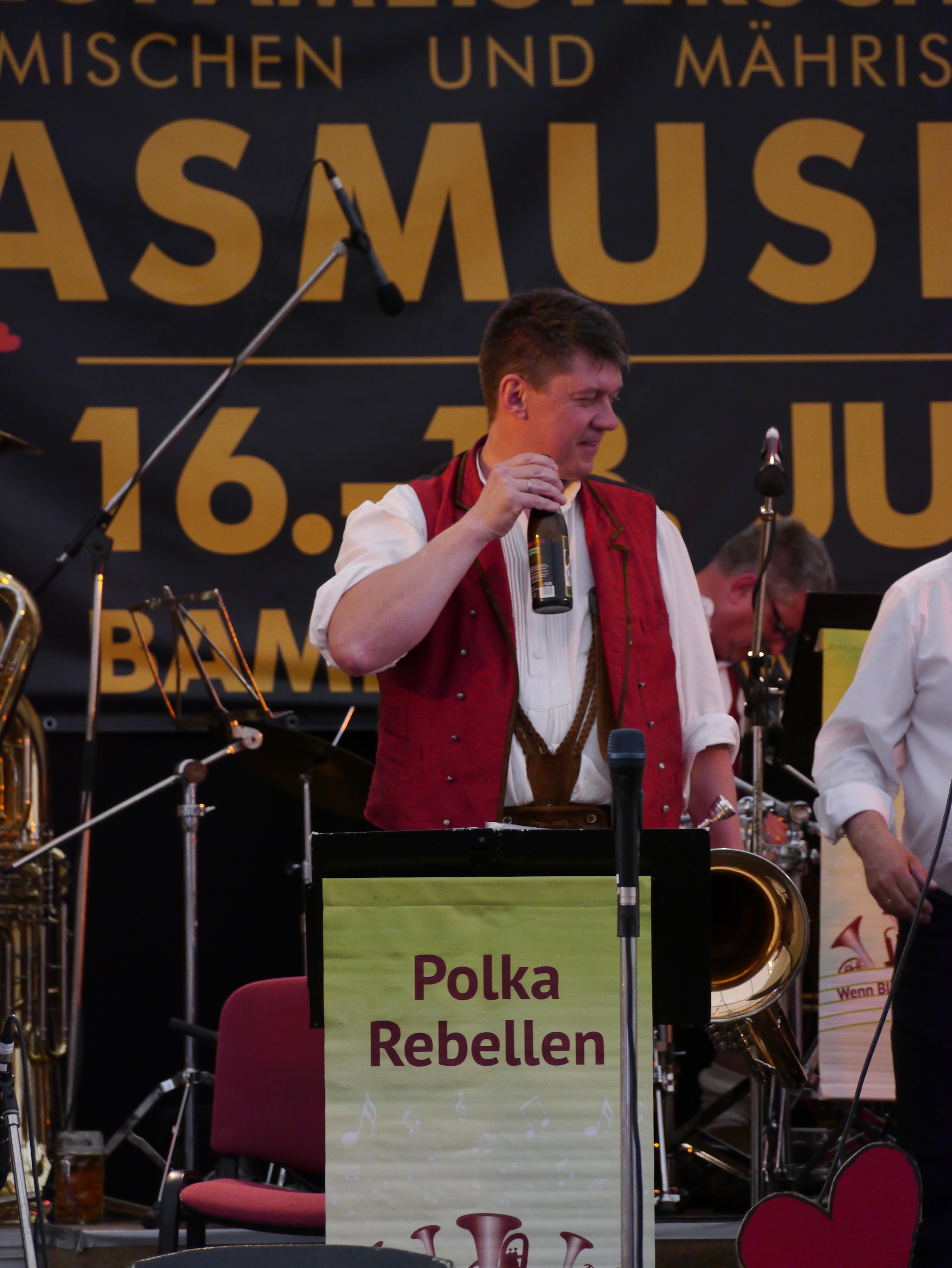 Ein cooles Rahmenprogramm begeisterte die Polka Rebellen und ihre mitgereiste Fangemeinde. Die Besichtigung der historischen Altstadt Bamberg, der Besuch der Binghöhle in Streitberg, die spontane Musikantengaudi nach dem Abendessen im Gasthaus, der Besuch des Gottesdienstes im Dom im Rahmen der Europameisterschaft, die Teilnahme am Sonntag beim Umzug vom Dom zum Festzelt und die musikalische Unterhaltung durch die Polka Rebellen im Festzelt waren wohl die markantesten Ereignisse. Und trotz der vielen Highlight blieb noch allen genügend Zeit, sich auf eigene Faust in Bamberg mit den etlichen Brauereien und deren Produkte auseinanderzusetzen.